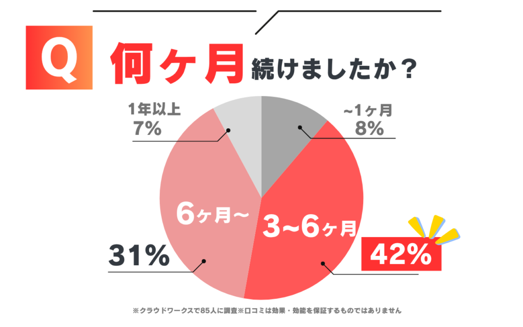 効果が出るまでの期間は約2週間とされており、体の内側から少しずつ体質を改善してくれます。※効果の出る期間は個人差があります
