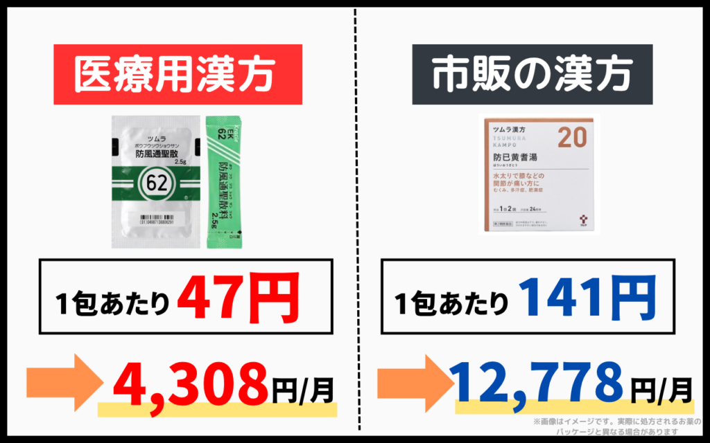 医療機関で取り扱われる医療用漢方薬は、基本的に健康保険が適用され、自己負担が少なくすみます。市販薬は全額自己負担で、長期的に見ると医療用よりも高額になる可能性があります。