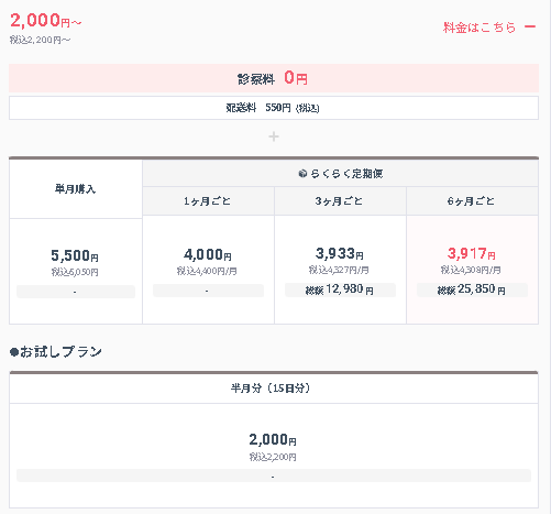 (DMMクリニック:らくらく定期便6ヶ月毎のひと月あたりの価格)